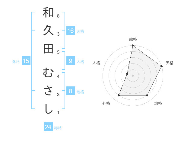和久田 むさしさんの総格は24画の5点!