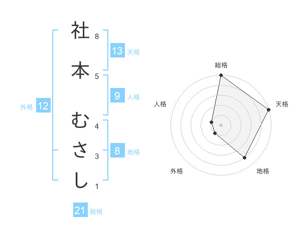 社本 むさしさんの天格は13画の5点!