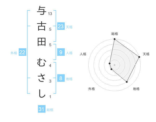 与古田 むさしさんを姓名の画数から五運を鑑定