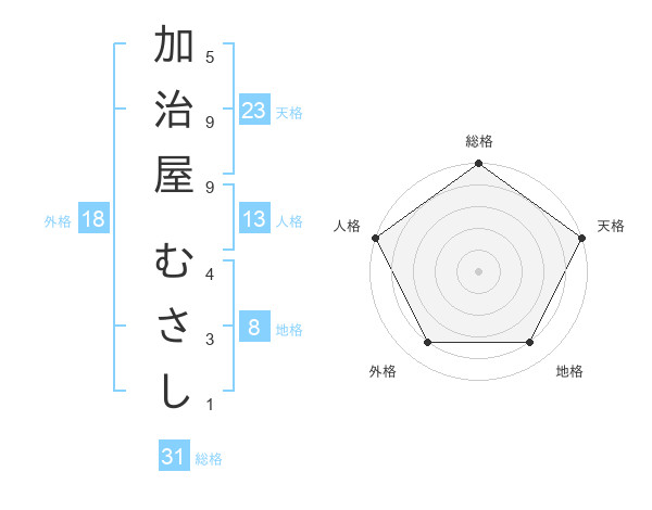 加治屋 むさしさんの総格は31画の5点!