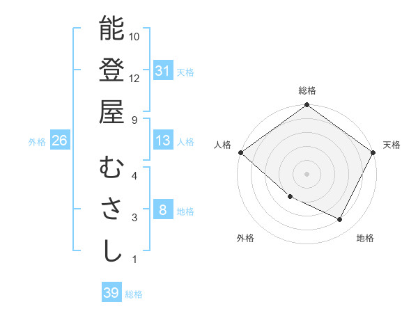 能登屋 むさしさんを姓名の画数から五運を鑑定