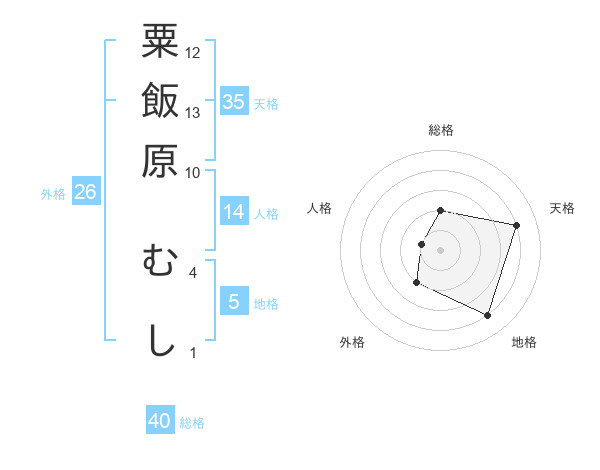 粟飯原 むしさんの天格は35画の4点!