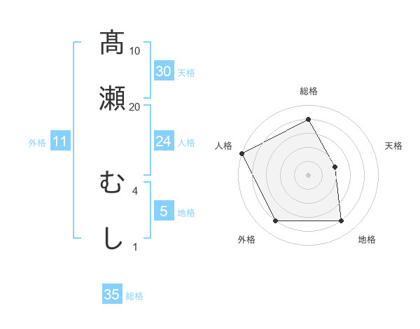 髙瀬 むしさんの総格は35画の4点!