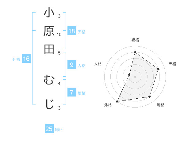 小原田 むじさんの外格は16画の5点!