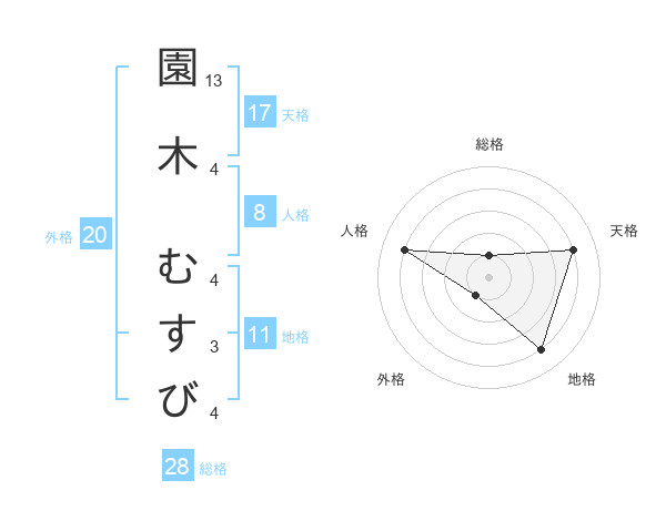 園木 むすびさんの天格は17画の4点!