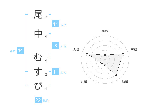 尾中 むすびさんの天格は11画の4点!