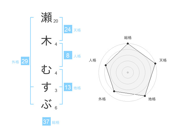 瀬木 むすぶさんを姓名の画数から五運を鑑定