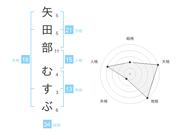 矢田部 むすぶさんを姓名の画数から五運を鑑定