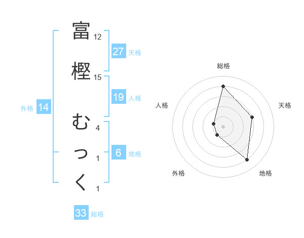 富樫 むっくさんの総格は33画の4点!