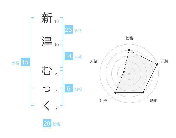 新津 むっくさんの総格は29画の4点!