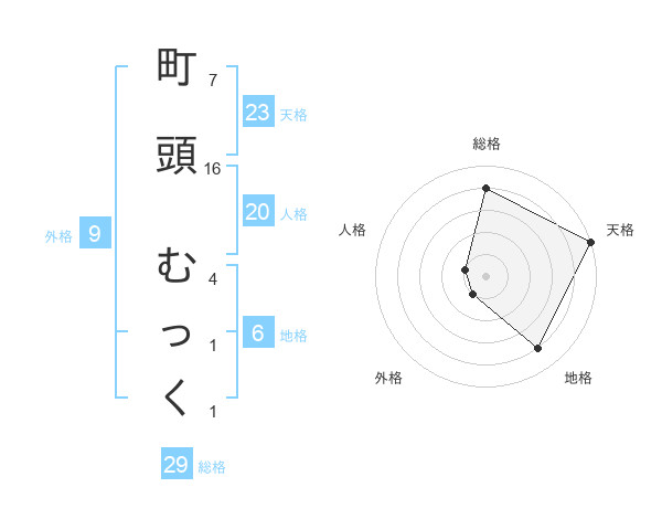 町頭 むっくさんを姓名の画数から五運を鑑定