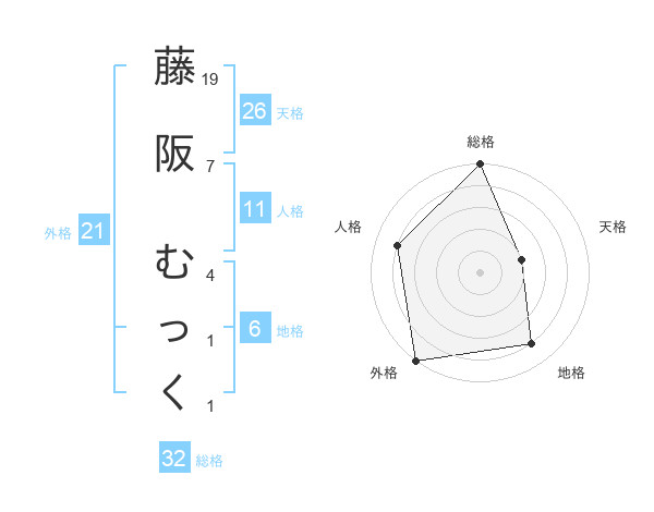 藤阪 むっくさんを姓名の画数から五運を鑑定