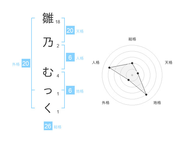 雛乃 むっくさんの地格は6画の4点!