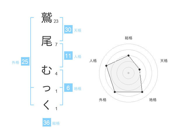 鷲尾 むっくさんの総格は36画の3点!