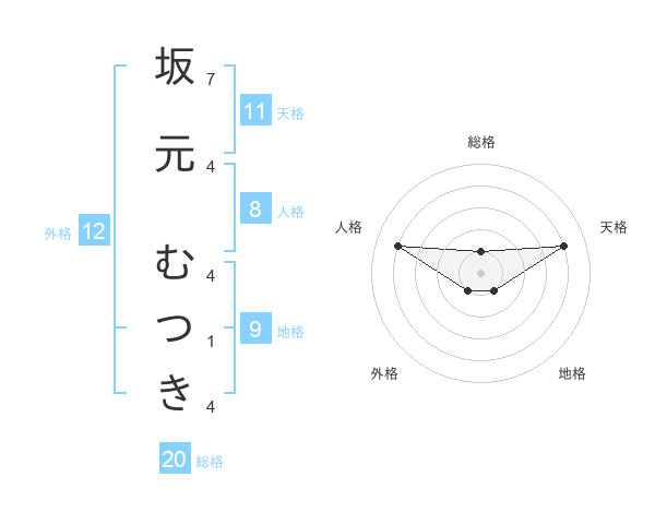 坂元 むつきさんを姓名の画数から五運を鑑定