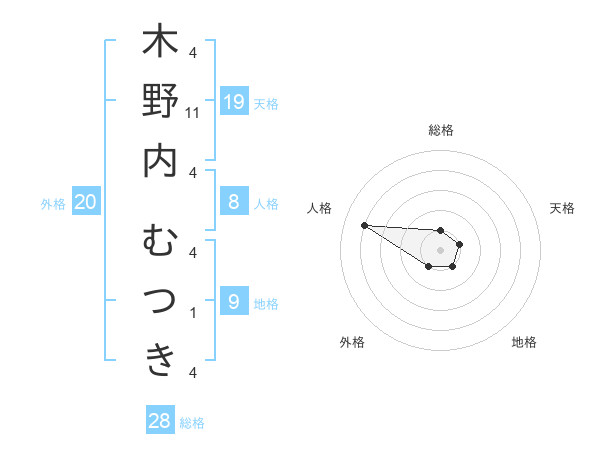 木野内 むつきさんを姓名の画数から五運を鑑定