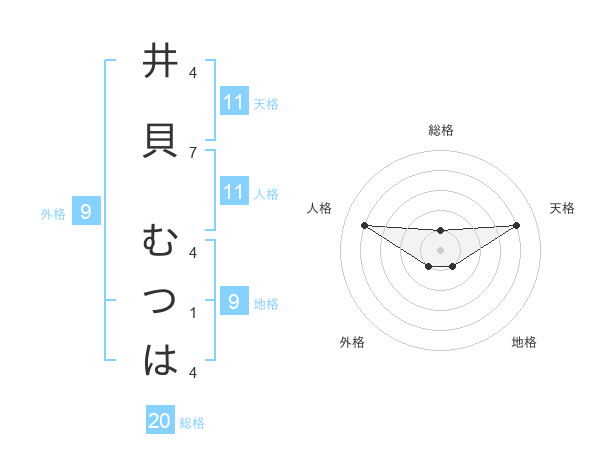 井貝 むつはさんの総格は20画の1点!