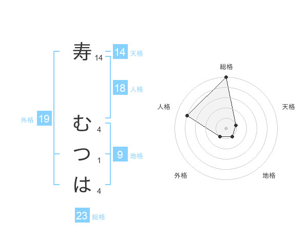 寿 むつはさんの総格は23画の5点!