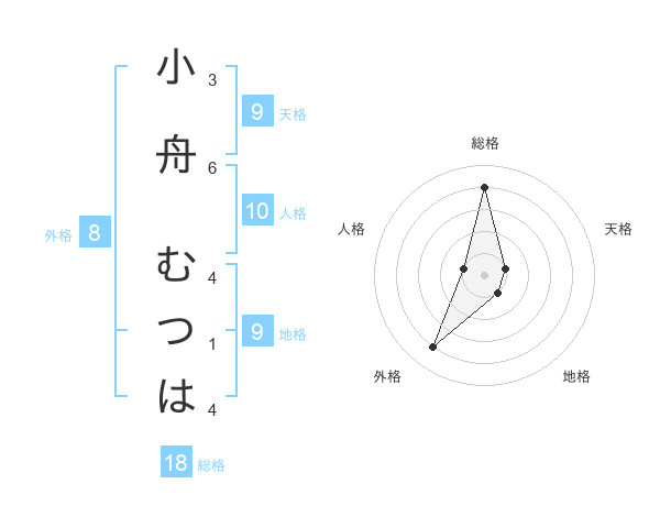 小舟 むつはさんの天格は9画の1点!