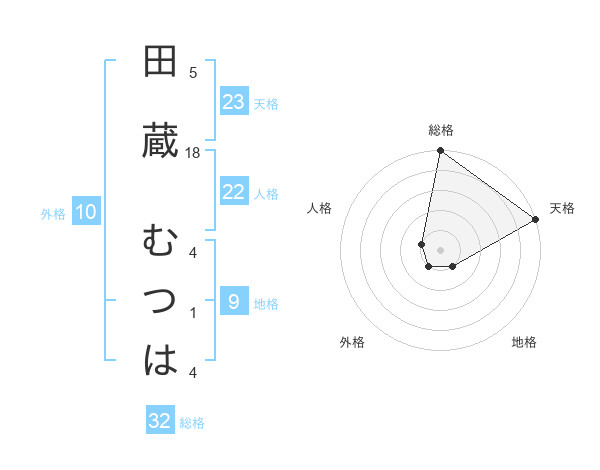 田蔵 むつはさんの総格は32画の5点!