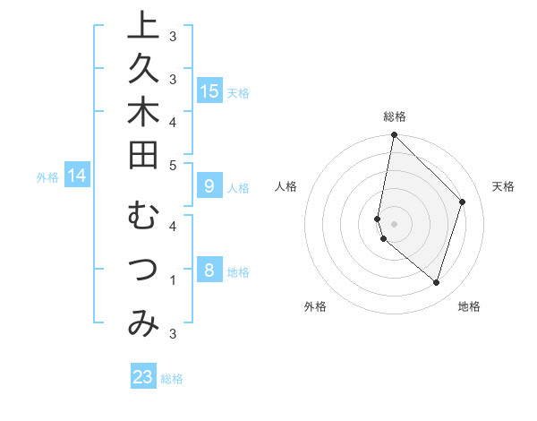 上久木田 むつみさんを姓名の画数から五運を鑑定