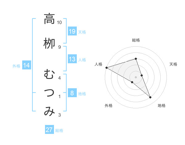 高栁 むつみさんの総格は27画の3点!