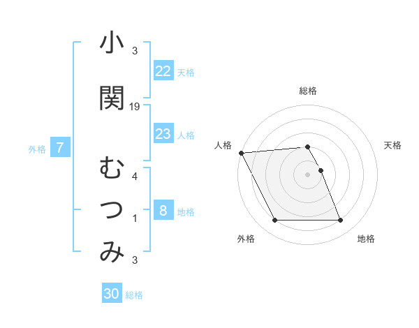 小関 むつみさんの総格は30画の2点