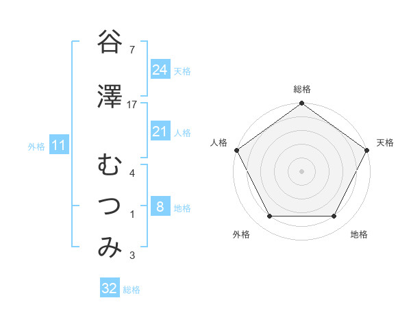 谷澤 むつみさんの天格は24画の5点!