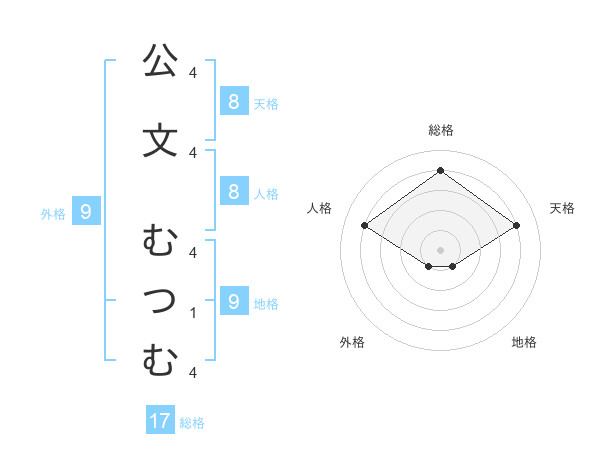 公文 むつむさんの天格は8画の4点!