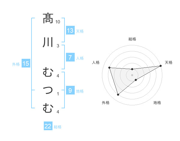 髙川 むつむさんを姓名の画数から五運を鑑定
