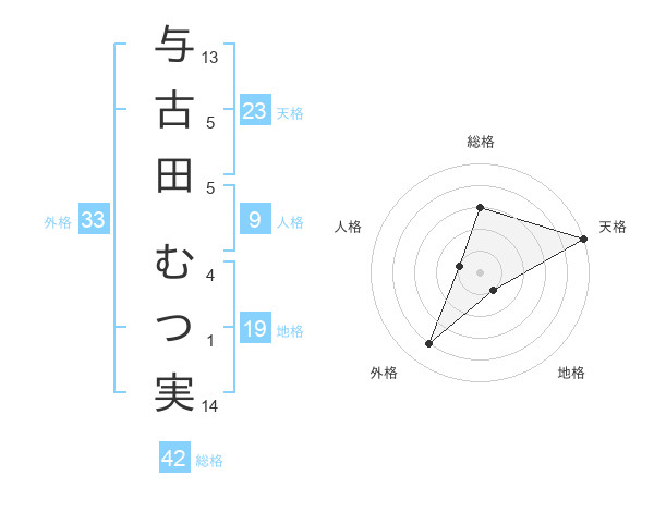 与古田 むつ実さんを姓名の画数から五運を鑑定