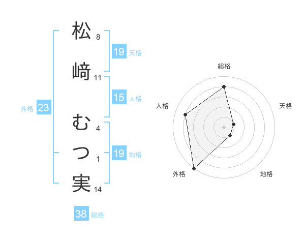 松﨑 むつ実さんを姓名の画数から五運を鑑定