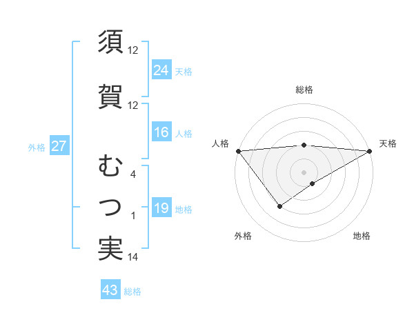 須賀 むつ実さんを姓名の画数から五運を鑑定