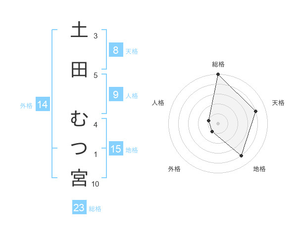 土田 むつ宮さんを姓名の画数から五運を鑑定