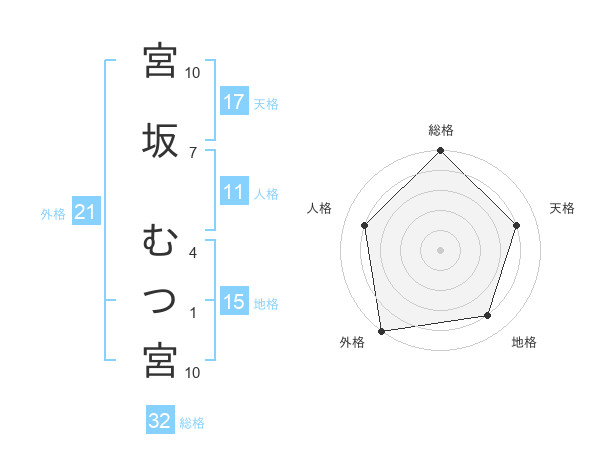 宮坂 むつ宮さんの総格は32画の5点!