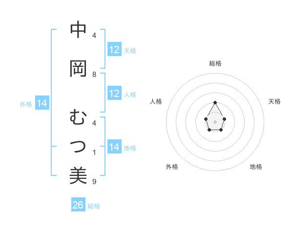 中岡 むつ美さんを姓名の画数から五運を鑑定