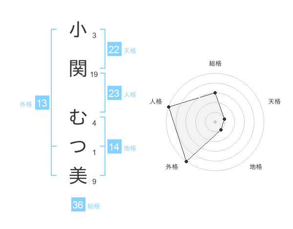 小関 むつ美さんの総格は36画の3点