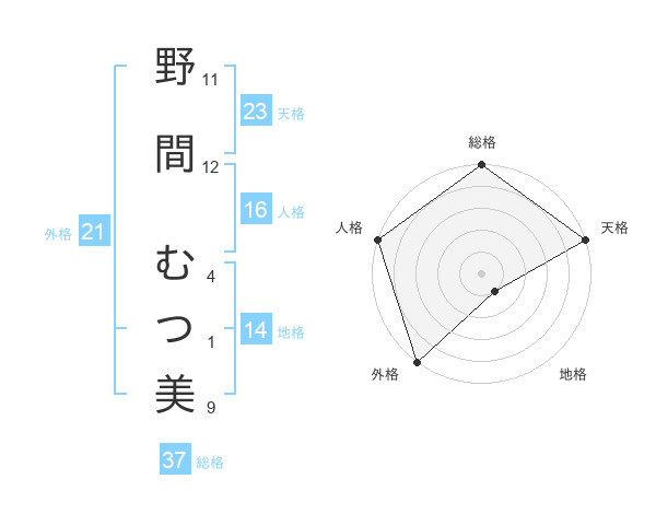 野間 むつ美さんを姓名の画数から五運を鑑定