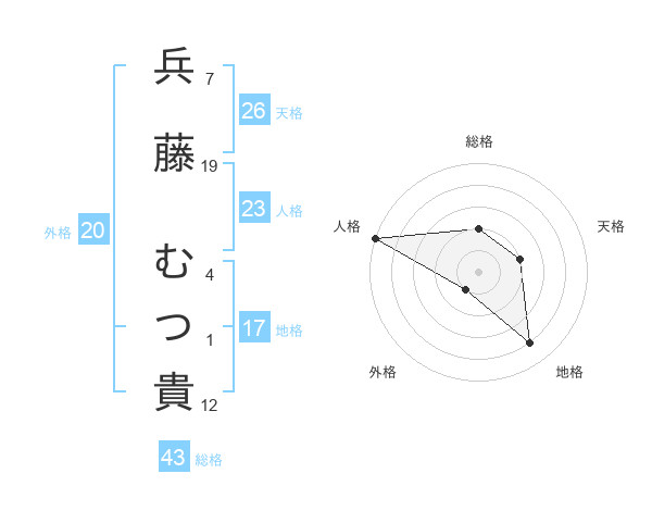 兵藤 むつ貴さんを姓名の画数から五運を鑑定