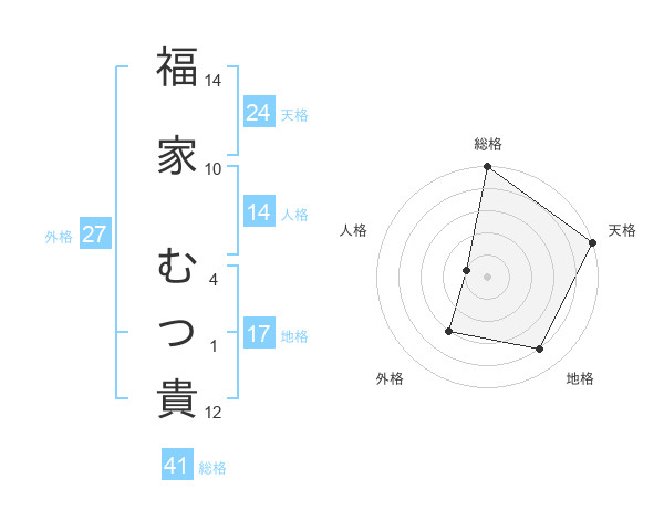福家 むつ貴さんを姓名の画数から五運を鑑定
