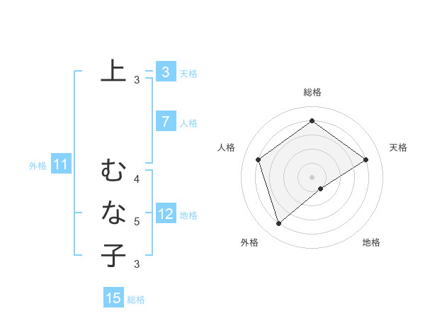 上 むな子さんの総格は15画の4点!