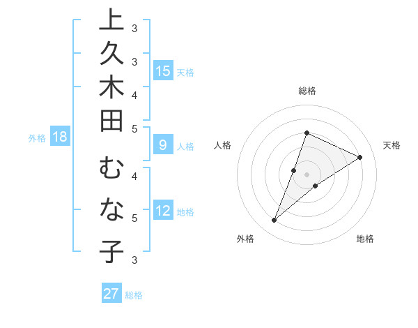 上久木田 むな子さんを姓名の画数から五運を鑑定