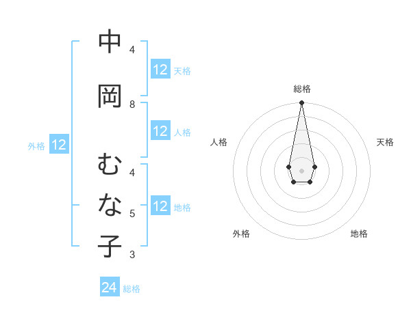 中岡 むな子さんを姓名の画数から五運を鑑定