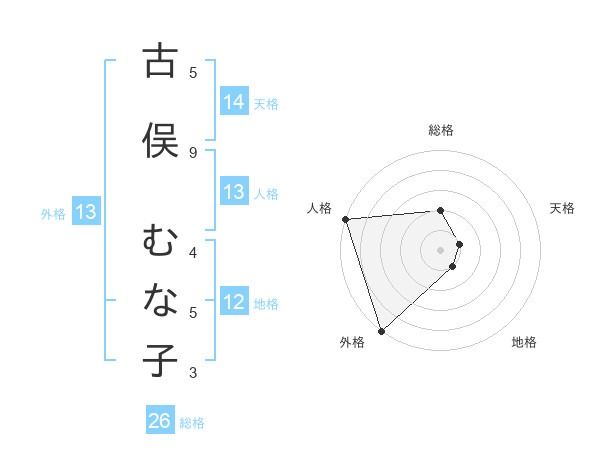 古俣 むな子さんの外格は13画の5点!