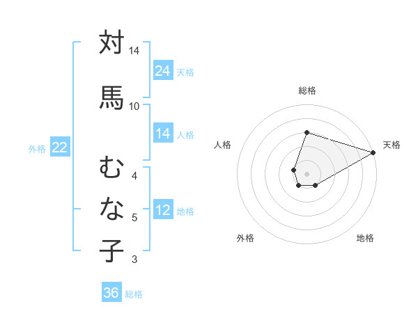 対馬 むな子さんを姓名の画数から五運を鑑定