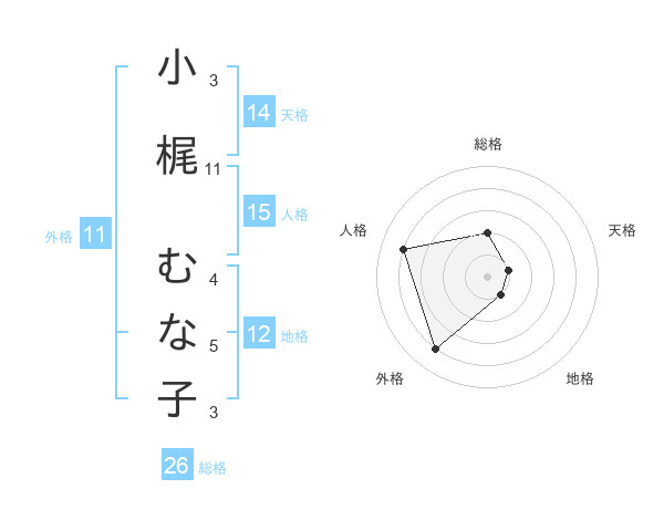 小梶 むな子さんを姓名の画数から五運を鑑定