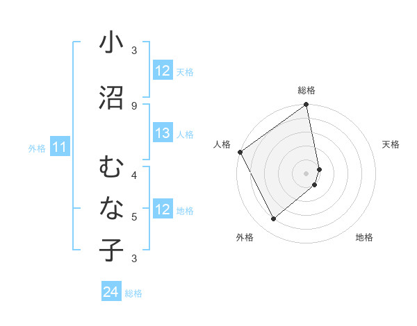 小沼 むな子さんを姓名の画数から五運を鑑定