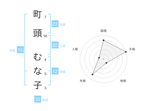 町頭 むな子さんを姓名の画数から五運を鑑定