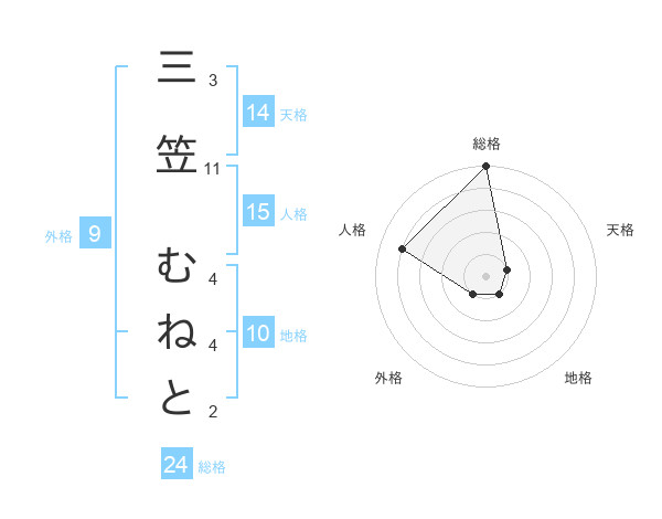 三笠 むねとさんを姓名の画数から五運を鑑定