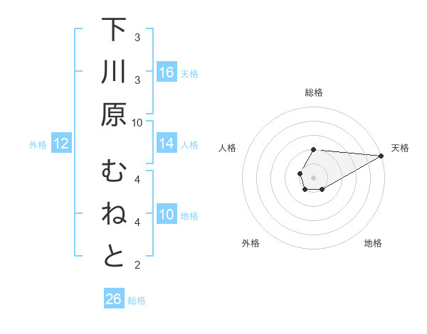 下川原 むねとさんを姓名の画数から五運を鑑定